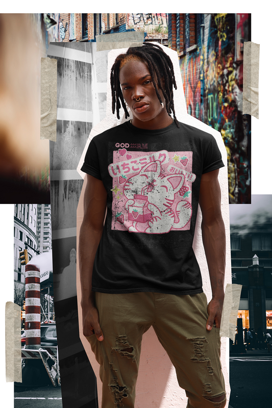 Strawberry Milk Japanese Cat Kawaii T Shirt Japanese Top Fashion Design Best Gift Men Women