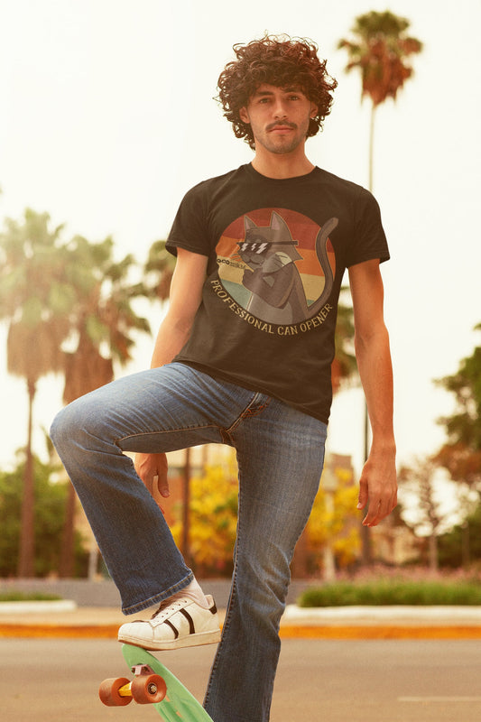 Professional Can Opener Cool Cat Retro T Shirt Top Fashion Design Best Gift Men Women