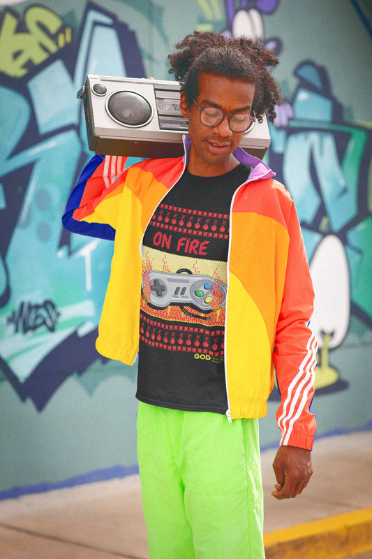 On Fire Gamer Retro Gaming T Shirt Top Fashion Design Best Gift Men Women