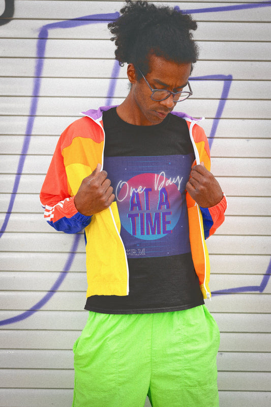 One Day At A Time Retrowave Neon Retro T Shirt Top Fashion Design Best Gift Men Women
