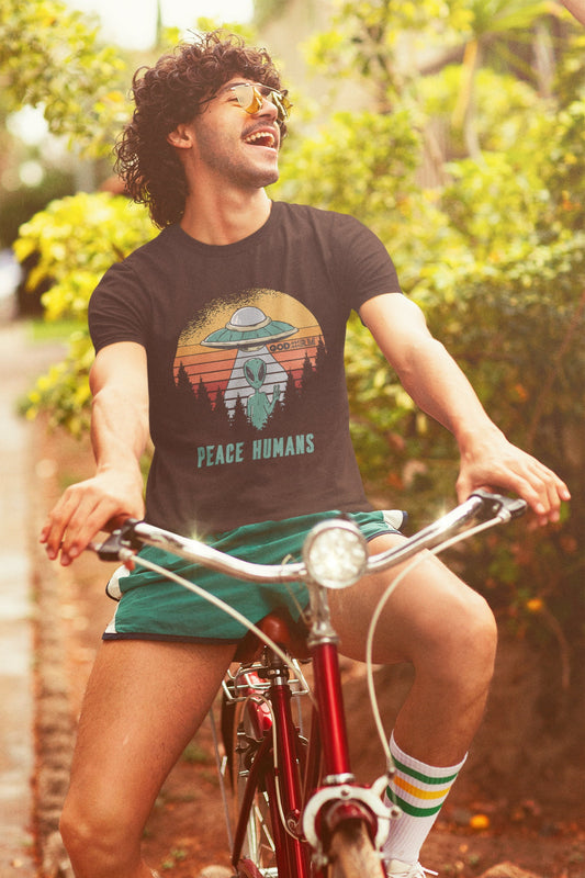 Peace Humans Cool Alien Retro T Shirt Top Fashion Design Best Gift Men Women