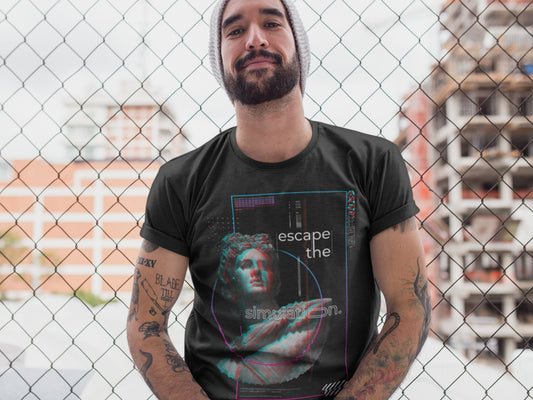 Unisex GODARM Organic Cotton Escape The Simulation Vaporwave Shirt | Black | White | French Navy